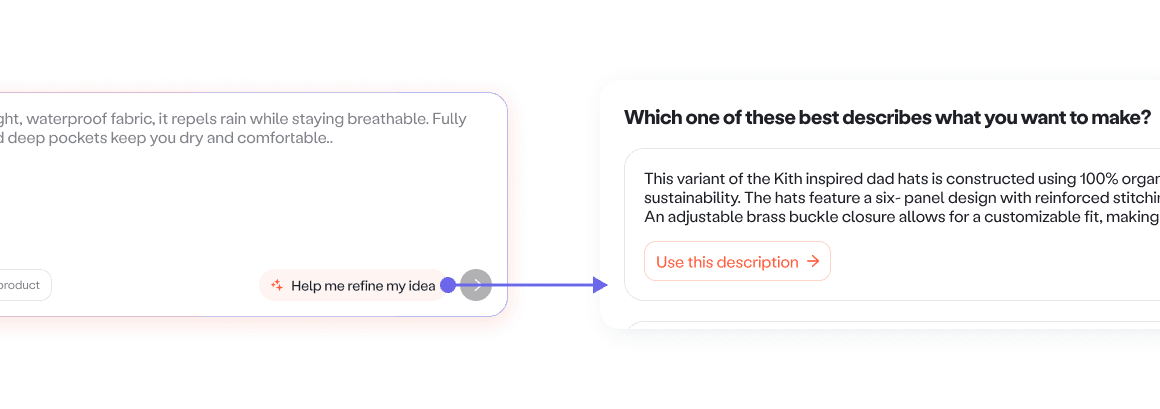 Leveraging AI. AI has become increasingly good at turning messy, unstructured input into clear, structured information.We used it as a guide that helps brands flesh out early ideas, learn what suppliers need, and turn that input into artifacts suppliers can act on. The goal was not automation for its own sake. It was education and speed, with transparency and user control.