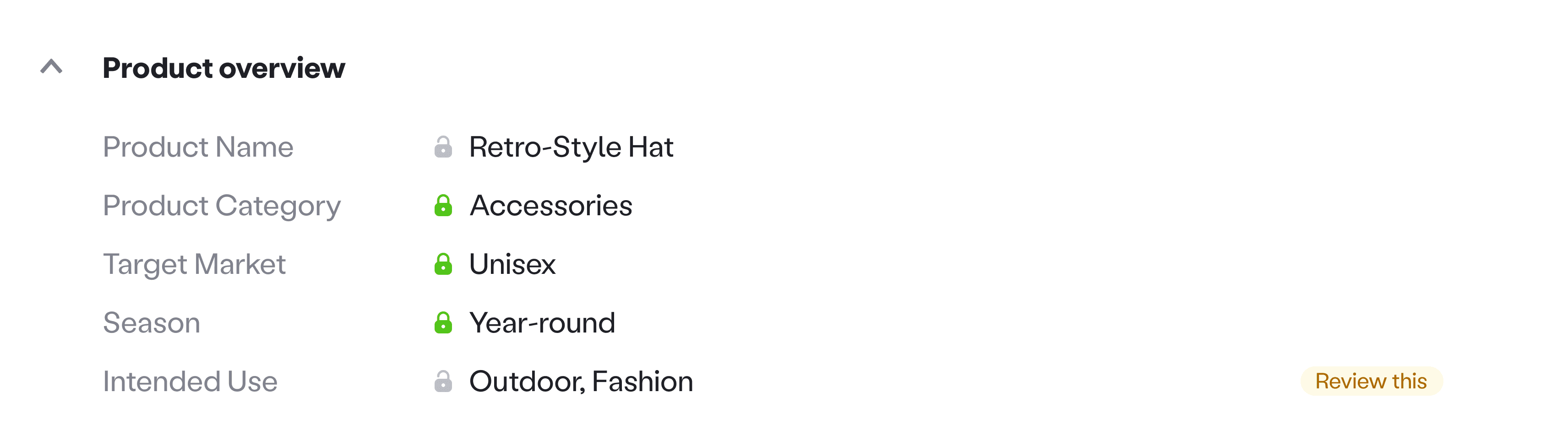 Review this cues highlighted fields that needed user confirmation, turning a static brief into a guided checklist.