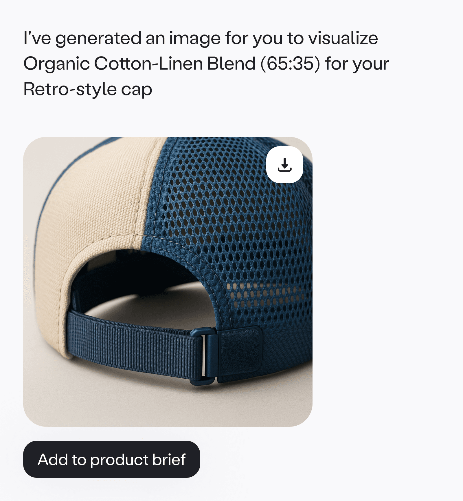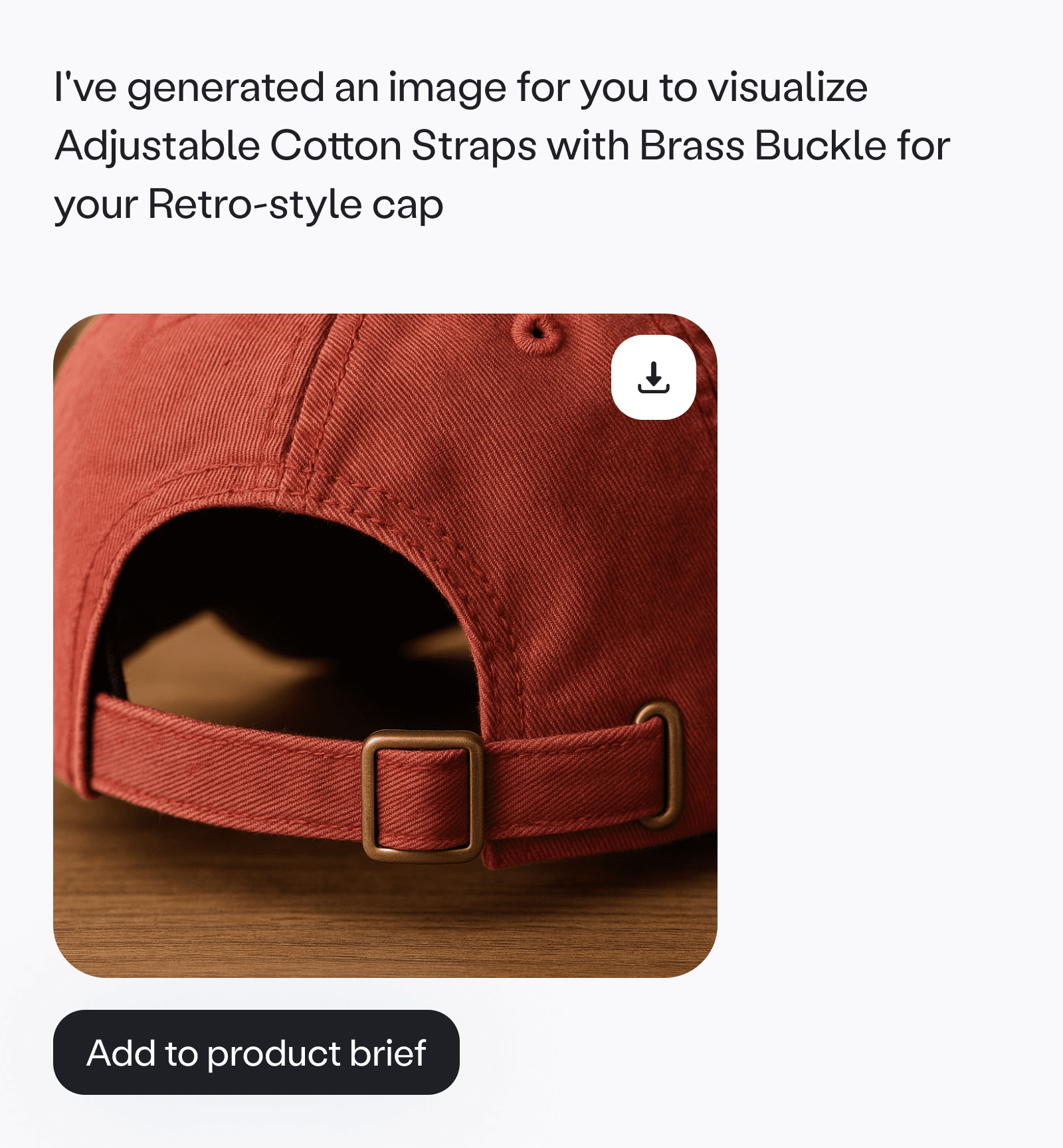 Visualize for ambiguous details. The sourcing team pointed out that some details are hard to validate in text. We used our existing image generation capabilities to visualize options using the full brief context, helping users confirm details and make decisions faster.