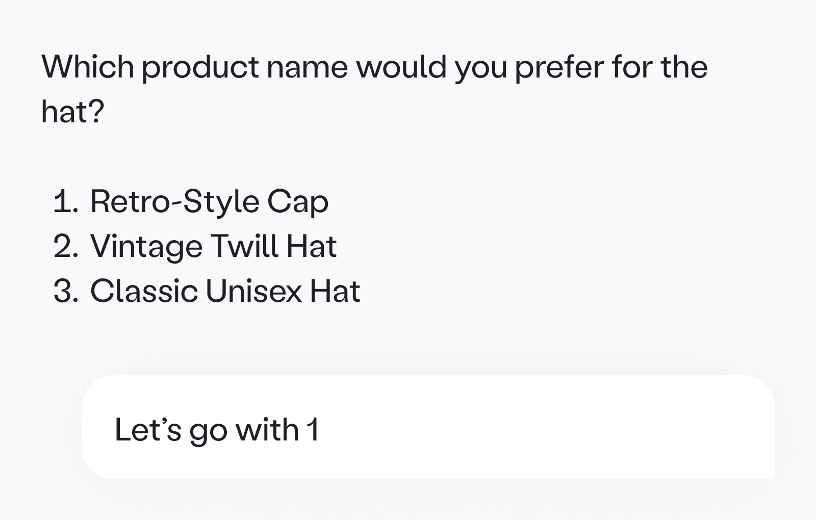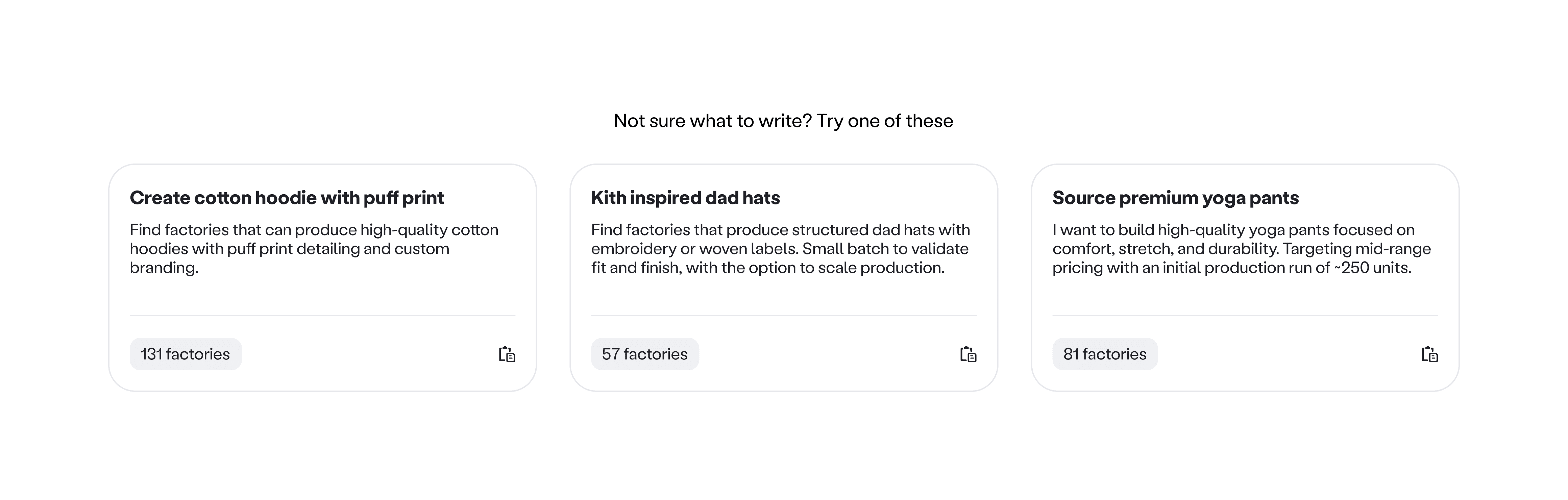 Prompt templates. Short, copyable examples that show what a strong request looks like. This helped users move past one word inputs we saw early on, like cotton, t shirt, or hats.