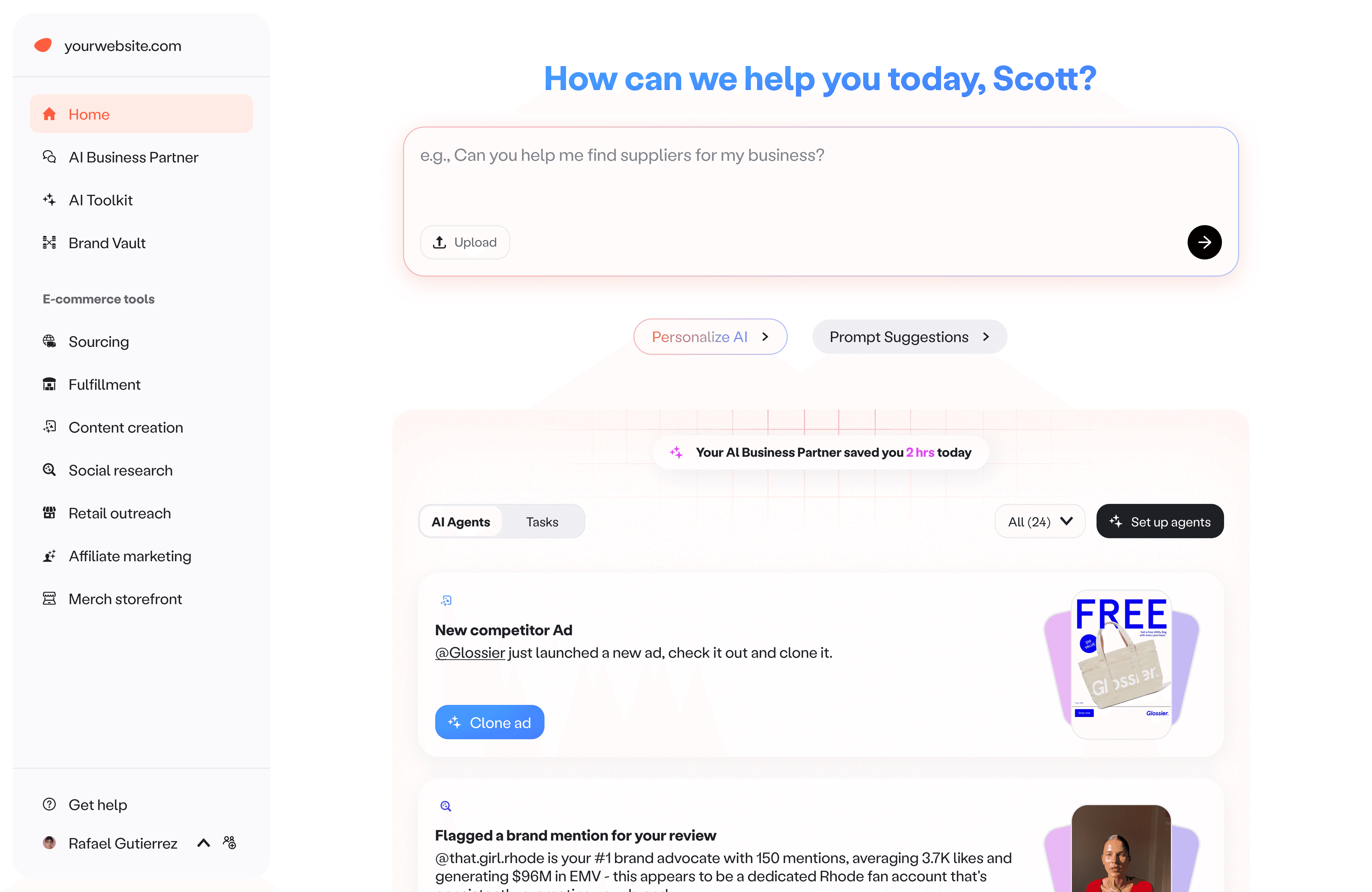 Designed a proactive brand feed that transformed the AI copilot from reactive Q&A into a system that continuously surfaced relevant, actionable insights across marketing, fulfillment, and sales, driving higher engagement and sustained usage.